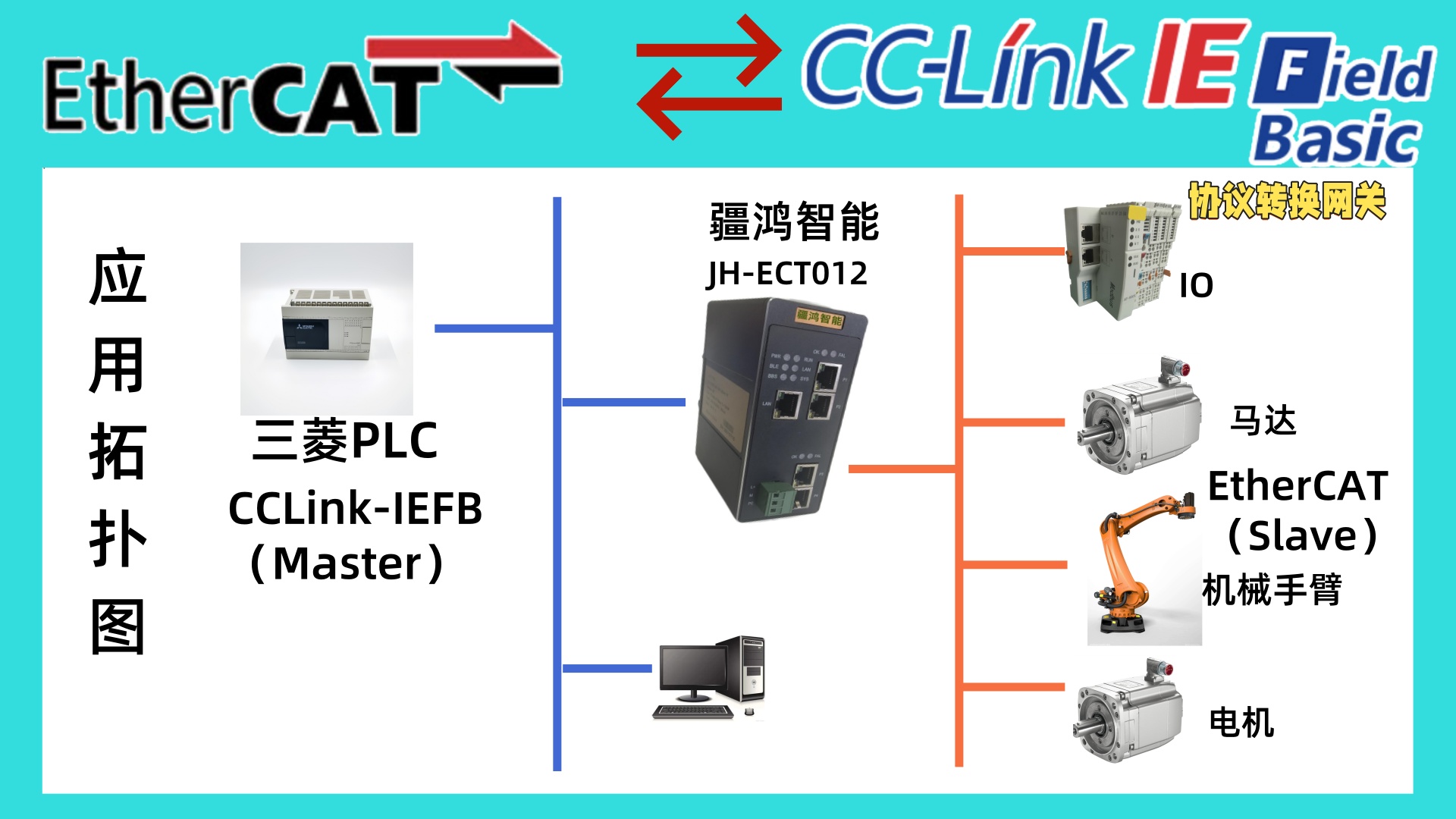 一,设备主要功能 疆鸿智能JH-ECT012型网关实现CC-Link IEFB网络与EtherCA...