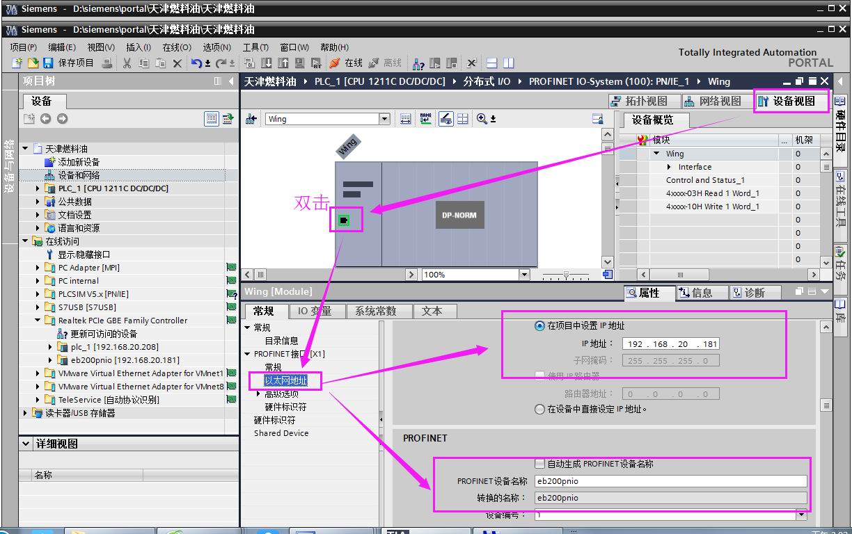 (7) 硬件组态---- 构建PROFINET链接,如图3-7,3-8