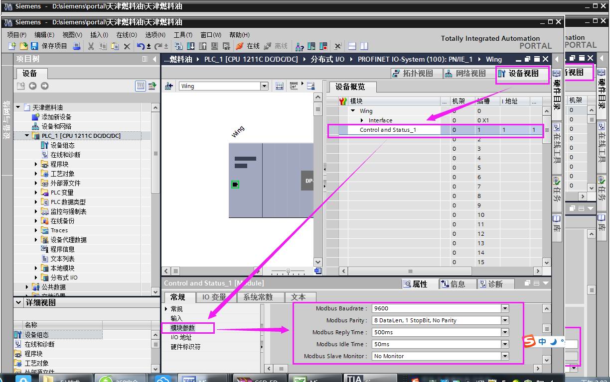 硬件组态----配置组态的模块参数(包含被连设备的波特率、校验位等信息,此处设置的参数要和被连设备实际参数一致),如图3-12