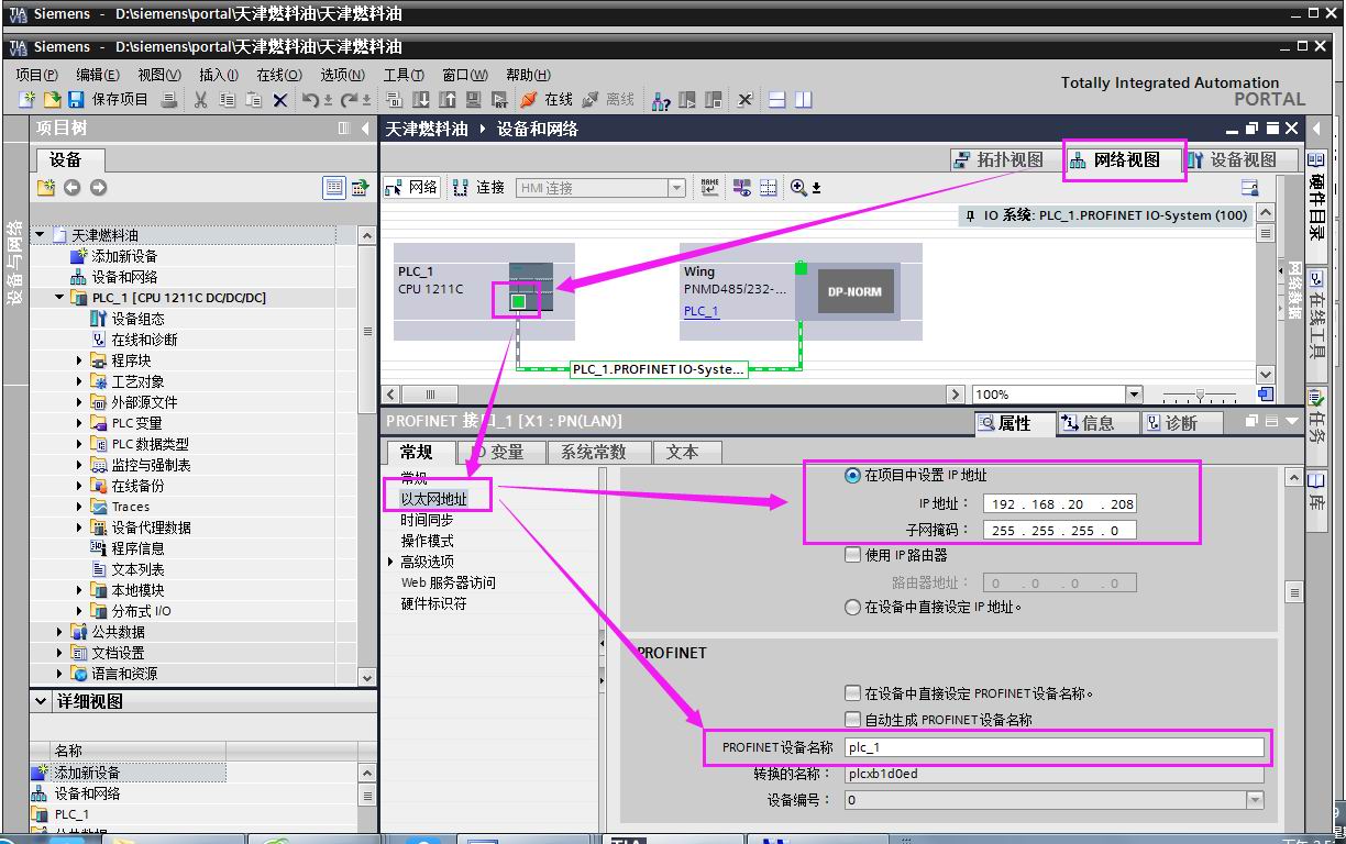 本案例西门子PLC的IP地址 192.168.20.208 ,PLC名称:PLC_1