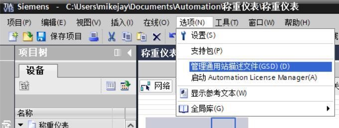 首先加入GSD文件。将MODBUS 转PROFIBUS 网关的GSD文件拷贝放到任意位置。打开博图,建立新项目“称重仪表”。进入设备和网络,在选项中选择管理通用站描述文件,安装GSD文件。