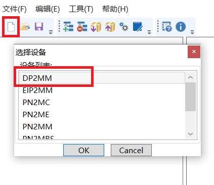 配置MODBUS转PROFIBUS网关的modbus参数。打开软件点击新建,选择DP2MM