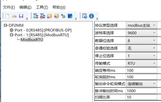设置MODBUS转PROFIBUS网关的485参数,波特率,数据位,校验位,停止位,等要和从站保持一致