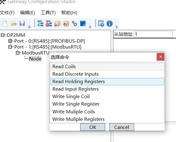 设置MODBUS转PROFIBUS网关在PROFIBUS总线中的从站地址
